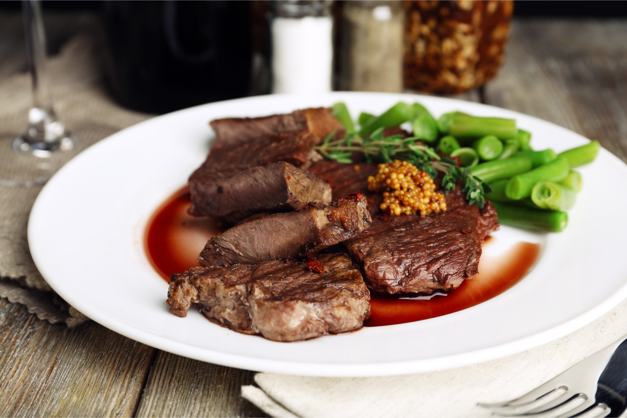 MENU 1:Pečená krkovička s jemne pikantnou omáčkou a pečenými zemiakmi, baranie rohy